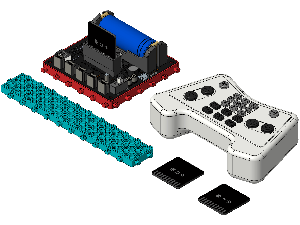 器材内容物包含:积木模块类、传感器类、执行器类、控制器类及电源类